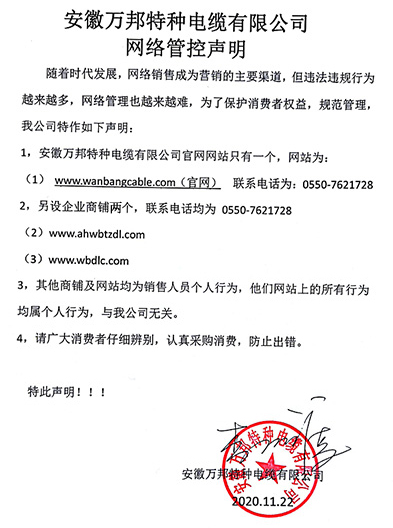 鄭重聲明:安徽萬邦特種電纜有限公司官方網站為:www_wanbangcable_com.dkknmwr.cn,除此之外無任何子網站或合作網站,其余均為假冒偽劣。電話:0550-7621728 13485756353 地 址:安徽省天長市滁州高新技術產業開發區經四路29號